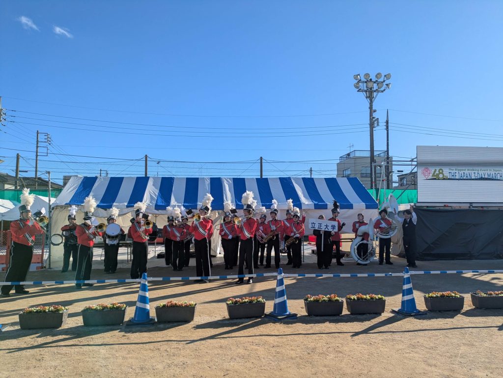 日本スリーデーマーチは、比企丘陵を舞台に繰り広げられる国際的なウォーキングの祭典で、今年は11月1日(土)から3日(月・祝)までの3日間にわたり開催され、本学吹奏楽部の演奏は、大会のフィナーレを飾るパレードに華を添え、参加者の思い出に残るひとときとなりました。