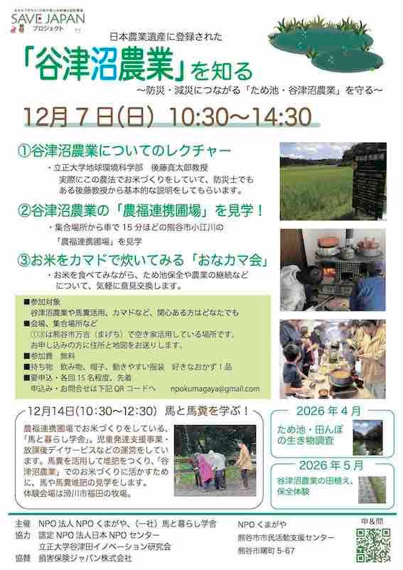 お知らせ一覧News HOME お知らせ一覧 2025 12/7 SAVE JAPANプロジェクト「日本農業遺産に登録された谷津沼農業を知る」にて教員が登壇しました。 カテゴリー別 すべて お知らせ 産学官連携 地域連携 生涯学習 研究支援 年代別 20252024202320222021202020192018 お知らせ 2025/12/08 12/7 SAVE JAPANプロジェクト「日本農業遺産に登録された谷津沼農業を知る」にて教員が登壇しました。 12月7日(日)開催のSAVE JAPANプロジェクト「谷津沼農業を知る」で地球環境科学部教員が登壇し谷津沼農業についてのレクチャーを行いました。 12/2 埼玉新聞告知案内